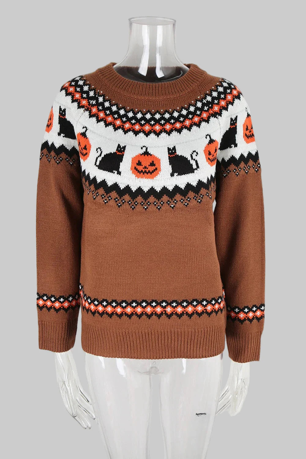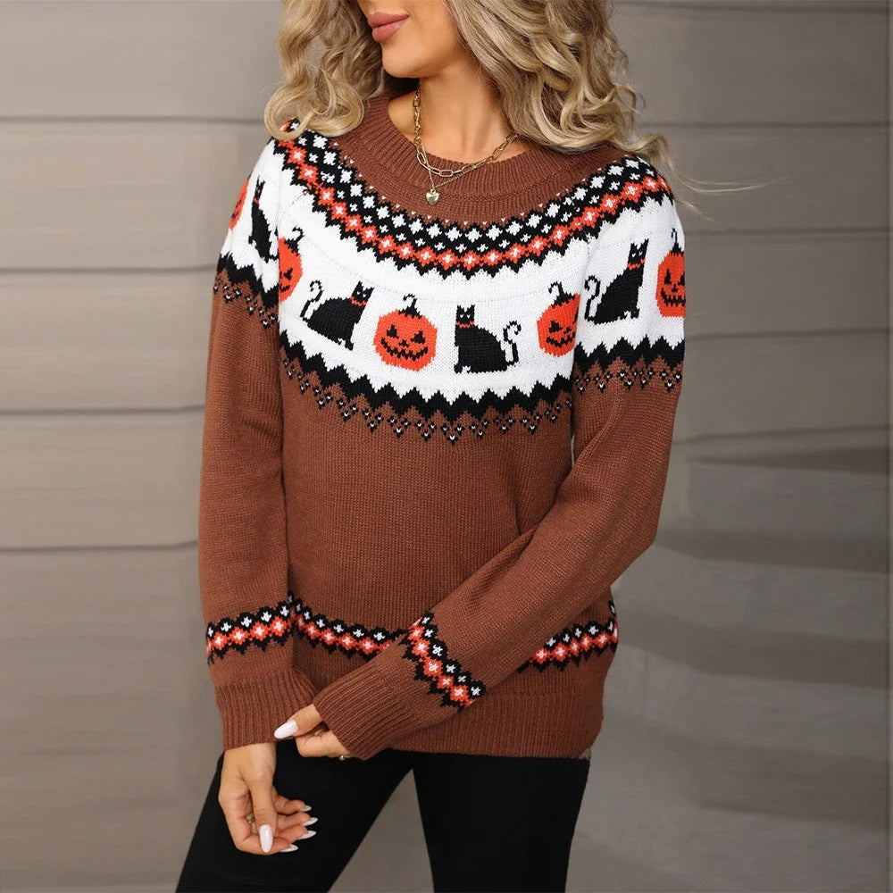 Whether you’re out trick-or-treating, heading to a Halloween party, or simply enjoying a cozy night in, this sweater adds the perfect touch of seasonal charm to your wardrobe.