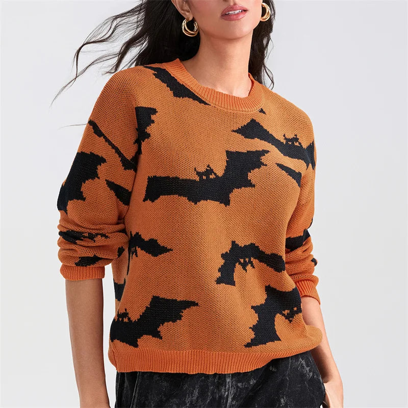Whether you’re out trick-or-treating, heading to a Halloween party, or simply enjoying a cozy night in, this sweater adds the perfect touch of seasonal charm to your wardrobe.